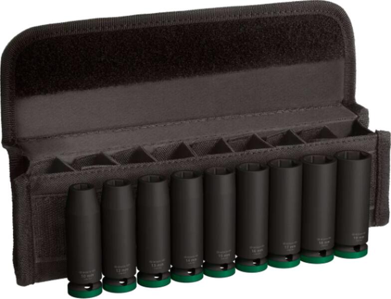 PRO Impact Socket Set erőteljes csavarozáshoz A PRO Impact Socket Set segítségével hatlapfejű csavarokat, egyéb csavarokat és anyákat hajthatsz be és ki a négyszögű meghajtójú kulccsal. Úgy terveztük, hogy a segítségedre legyen gyári telepítéseknél végzett csavarozási feladatoknál és más típusú nehéz ipari munkánál. A PRO Impact Socket Setben lévő dugókulcsokat hőkezelt CRMO (króm-molibdén) acélból gyártottuk, és vastag fallal alakítottuk ki őket, hogy ellenálljanak a nagy nyomatékoknak. Fekete foszfátbevonattal láttuk el, hogy megvédjük őket a rozsdától és a korróziótól. A dugókulcsok lézergravírozással és színkóddal vannak ellátva, így rögtön láthatod, hogy melyikre van szükséged. Horonyt és átmenő furatot alakítottunk ki rajtuk, hogy a csapunk és gyűrűnk segítségével rögzíthesd őket az ütvecsavarozóhoz – amikor extra erős fogásra van szükséged.
