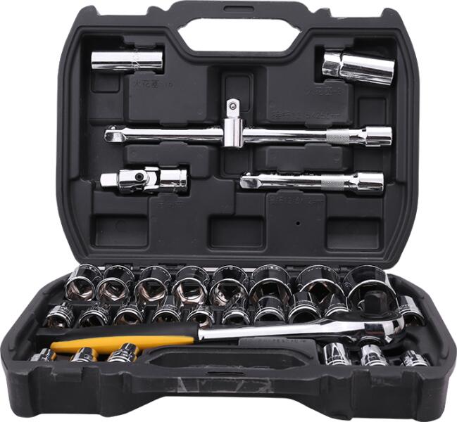 Deli Tools aljzatkészlet EDL1032 Ez a 32 részes aljzatkészlet praktikus hordtáskába van csomagolva. A foglalatok rendkívüli mechanikai szilárdságukkal tűnnek ki, a racsnis erős 45T fogazott mechanizmussal rendelkezik. A szerszámok tartós Cr-V 50BV30 króm-vanádium acélból készülnek, amely garantálja a kiváló minőséget és a kopásállóságot. A készlet nagyon nagy terhelést és pontosságot igénylő munkákat tesz lehetővé. Lehetővé teszi a különböző névleges méretű menetes csatlakozások ki- és csavarozásával kapcsolatos számos szerviztevékenység elvégzését. Kiváló választás amatőröknek és profiknak egyaránt. A teljes foglalatcsomag biztosítja, hogy a csavarkulcs minden munkaterületen tökéletesen illeszkedjen az igényekhez.   Cr-V acél A Cr-V (króm-vanádium) acél a 8650-es acél európai megfelelője (az Egyesült Államokban és Japánban használt név). A króm megvédi az acélt a korróziótól és az oxidok negatív hatásaitól. Ezenkívül véd a kopástól és ellenáll a magas hőmérsékletnek. Fontos, hogy ez az acél nem veszíti el tulajdonságait magas hőmérsékleten, így megakadályozza a szerszámok deformálódását. A CSOMAG TARTALMAZ: