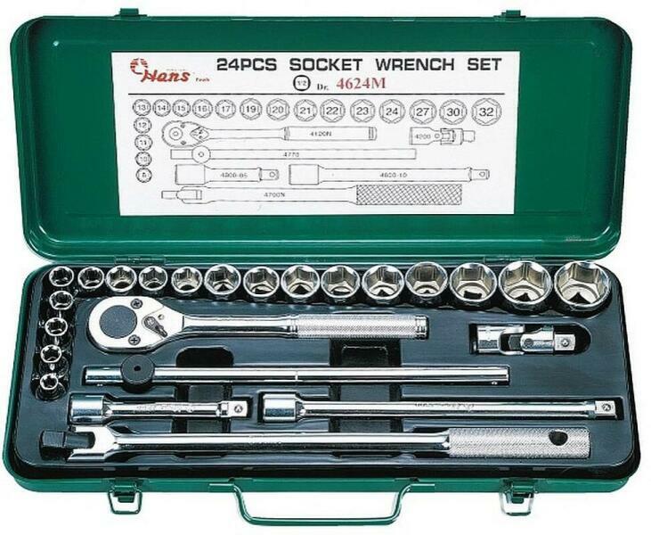 HANS 1/2" dugókulcs készlet 8-32mm 24 részes hatszög 4624M Cr-V az iSzerszámnál. Professzionális, ipari minőségű HANS 1/2" dugókulcs készlet 8-32mm 24 részes hatszög 4624M Cr-V. Anyagösszetétel: Chrome-Vanadium (Cr-V). A 24 részes készlet tartalma 1-1 db: