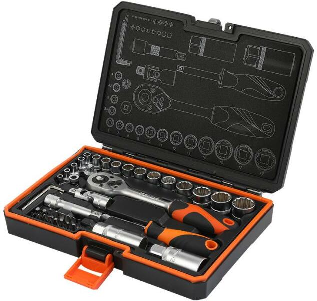 KENDO 1/4"+3/8" dugókulcskészlet 45r. A 45 részes, KENDO 1/4" + 3/8" dugókulcs készlet minden alapvető szerszámot tartalmaz, ami a ház körüli munkákhoz szükséges