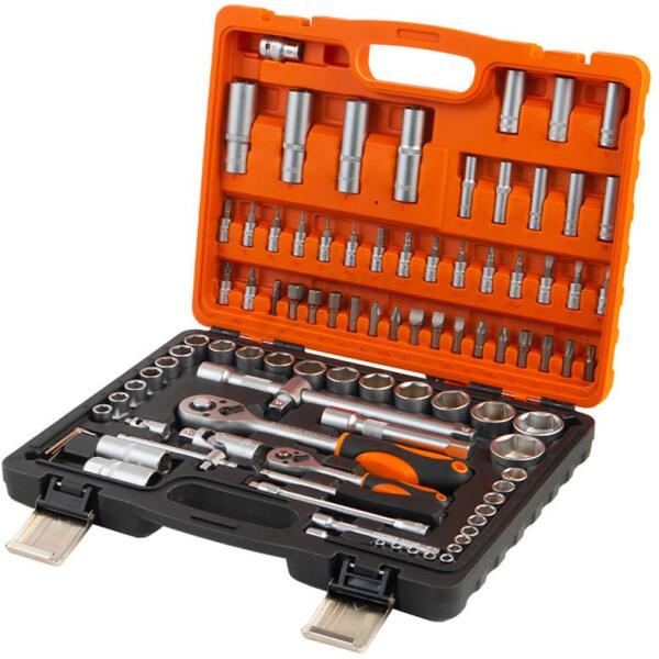 KENDO 1/4"+1/2" dugókulcs és bitkészlet 94r. A 94 részes KENDO 1/4" + 1/2" szerszám készlet egy olyan komplett szerszám összeállítás, amely minden alapvető szerszámot tartalmaz, amire a ház körüi munkákhoz és még nagyobb projektekhez is szüksége lehet. A készlet 94 darabos, és tartalmazza az 1/4" és 1/2" dugókulcsfejeket, gyertyakulcsokat, kardáncsuklókat, bittartókat és adaptereket, toldószárakat és racsnis hajókarokat, valamint az összes alapvető bitet is. Az edzett szénacélból kialakított szerszámok erősek és strapabíróak. A szerszám készlet csomagolása jól védi a szerszámokat, ergonomikus kialakítása pedig megkönnyíti a tárolást és az utazás során való hordozhatóságot is. Ezen szerszámkészlet ideális választás minden olyan felhasználó számára, akinek gyorsan el kell végezni az otthoni javításokat vagy egyéb ház körüli munkát. 1/4" szerszámok: