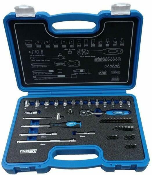 46 részes gola készlet hatszögletű fejekből 1/4" matt króm, mikro szatén bevonattal műanyag tokban. A hosszabbítók recézett résszel vannak ellátva a kényelmes munkavégzés érdekében. A készlet kizárólag kézi használatra készült. Termék részletek: