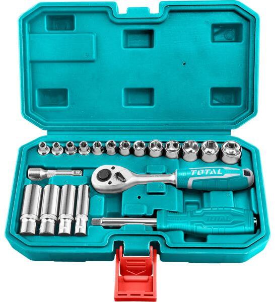 TOTAL dugókulcs készlet, 20 db-os, 1, 4", ipari, CR-V(50BV30) THT141201 (THT141201)
